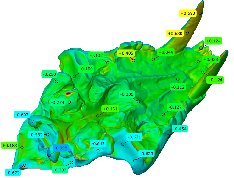 打印后我們對模型進行了再次掃描,全尺寸檢測的結果顯示,激光燒結技術打印這類復雜曲面化石模型的精度是比較高的,可以滿足化石修復工作的任務要求,并且相對其他3D打印技術來說,模型的強度和耐久性更有優勢,SLS在數字化考古修復領域有很好的應用價值。
