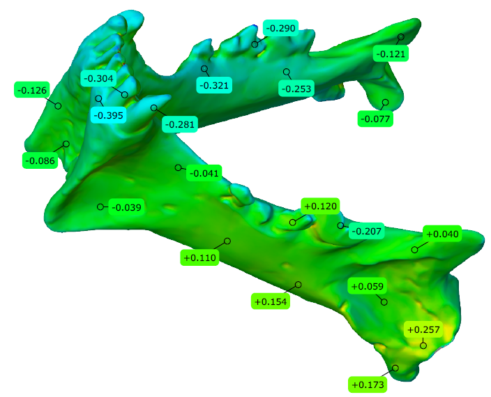 打印的巨頦虎化石模型全尺寸精度檢測結果